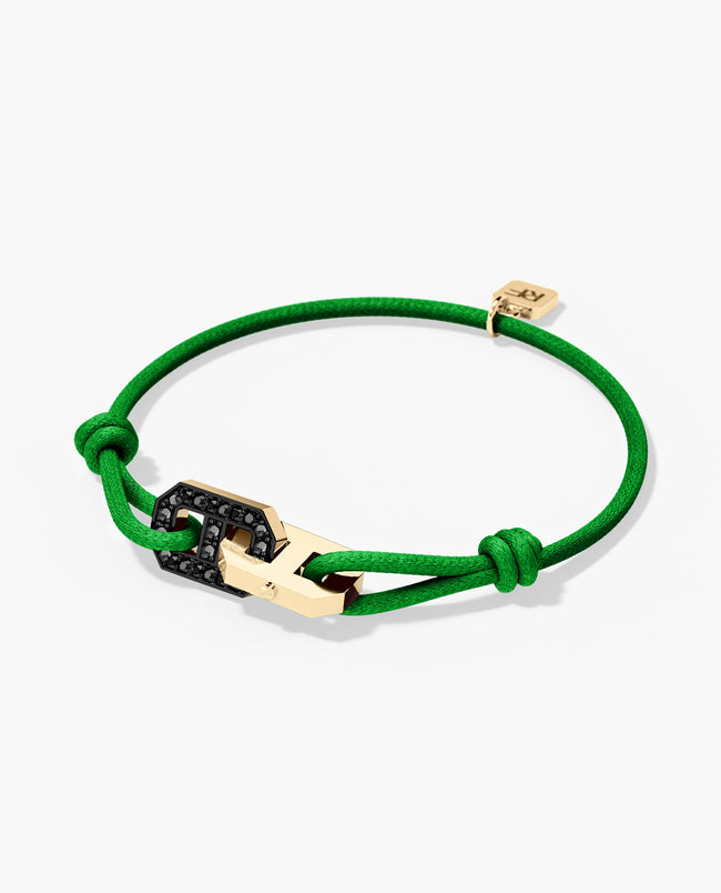 BRIGGS Cord Bracelet with Gold Charm & 0.45ct Black Diamonds - 14K Gold