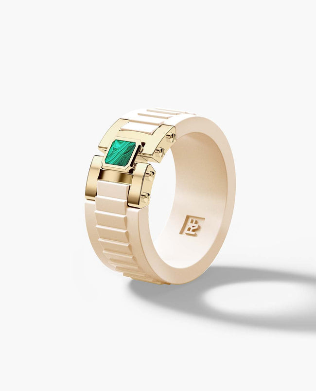LA PAZ Atomic Silicone & 14k Yellow Gold Ring with Malachite